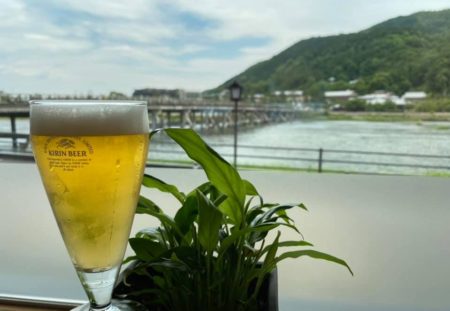 伊丹から京都までのバスもお客さんは7人! 飛行機を含め、このくらい人が少ないと新型コロナに心配をしないで済む。ちなみに新幹線じゃないのは、羽田だと自分のクルマで行けるためです。市内のホテルに荷物を預け(ホテルはどこでも空いている。しかも京都としちゃ考えられないほど安い!)、まず嵐山へ。確かに人がいません! 渡月橋際のカフェに座れる!