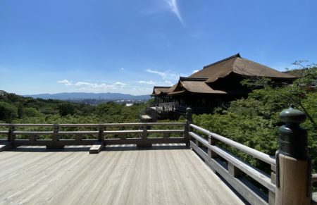 奥舞台の下の音羽の滝はこんな感じ。下まで入れないのでなく、誰も居ないだけ。新型コロナのため滝の水は飲めなくなっているけれど、じっくり見られます。もちろん清水寺周辺もノンビリしており、産寧坂や二年坂の散歩楽しい。天気良いと少しばかり暑いですが。