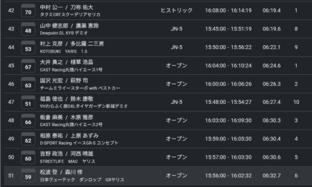 全日本開幕戦「三河湾ラリー」が始まりました。競技用タイヤじゃないことを考えたら十分な順位だと思う。ハイエースの大井選手と勝負になっちゃってます。クルマは直線の長いパワー勝負のところでタイム伸びず。サーキットと全開の公道を使うSSでは大井選手から大きく引き離されるものの、パワーより根性勝負の三河湾スカイラインでは肉薄出来る。