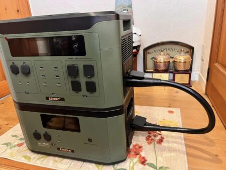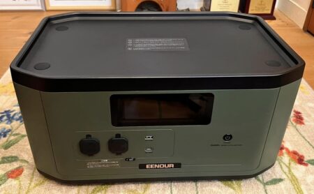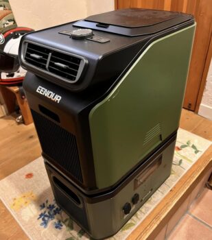 ということでベース電源にすべく選んだのが、上の写真の上側である『イーノウF2000』(クーポン使うと17万9990円)。ピンで使うと2000W/2kWhという性能を持つ。100V/400Wを使えば4時間。PCとエアコン使って800Wなら2時間の停電をカバー出来ます。さらにアウトドアに持って行けば夜間照明や、ホットプレートなどのポータブル電源になる。