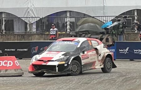 木曜日のSS1はスタート前のウォームアップ区間(わずか100mくらいです)で各車派手な挙動を見せるのだけれど、勝田選手、超派手! 観客大盛り上がり! タイムもバッチリ出した。エヴァンスより0.7秒速く、ロヴァンペラから0.1秒遅れ! 見ていて全く解らない差です! もう優勝を争うTOPドライバーと全く見分けが付かない! こんな経験、初めてです!