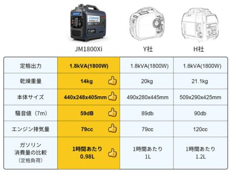 ハイブリッドに代表される電動車を持っておらず、発電機も常備していないなら、こういったタイミングでの購入をすすめたい。発電機集めが趣味になってしまったため、先日最新型をオーダーした。上の表にあるイーノウの『JM1800Xi』というヤツで、1800Wながら小型&14kgしかなく圧倒的に静かだという。まだ手元に届いてないけれど、ついに日本製を超えたかも。