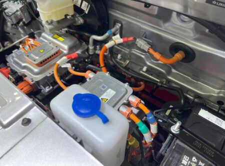ボンネット開けたらこんな。インバーターや、その他の補機類などはチャンとしたメーカーから調達しているのだろう。それなりのクオリティを持つ。ボディ構造そのものもプレスされた鋼板を使い、普通のクルマを作る生産工程になっているようだ。されどインバーターの載せ方や、駆動系などの搭載方法が厳しい。こんなクオリティだと長持ちしないだろう。