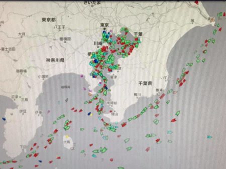 先ほど大井埠頭の定点カメラの映像を見たら驚いた! 午前中のこのあたり、いつもならコンテナを引っ張るトレーラーやコンテナを受け取りに行くシャシで大渋滞する! なのに本日ガラガラ! こんな風景、盆暮れ正月でも見たこと無い! 皆まで書かずとも解る通り、海外から物資が届いていないということです。不安になりマリーントラフィックをチェックしてみた!