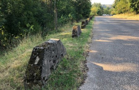 軍の施設なのでヒンケルシュタインは戦車の脱輪防止に埋められていると聞いているのですが、ぱっと見「ゲームを作ったヒトはこれを見てインベーダーのキャラを作ったに違いない」と思えるくらい、あのインベーダーに似ています。そしてそれはラピュタに出てくる苔むしたロボット兵のように「いつから埋まってんだ?」というくたびれ具合で、道路の両側、或いは反対側に延々と埋まっています。