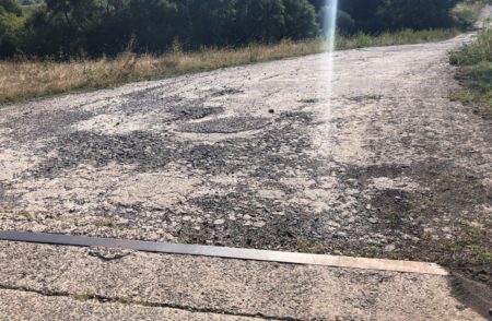問題のくそ道と山道ですが、どちらの道もかなり特殊な荒れ方をしているのが問題です。ヒンケルシュタインと同じくらいコンクリートの舗装が古いのだと思いますが、ところどころ表面が剥がれるようにバリッと剥がれており、剥がれた破片が道じゅうに広がっているのです。剥がれはどんどん進行するので破片は常に補充されている、という感じです。