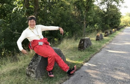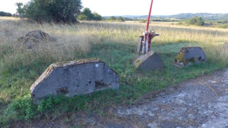 ヒンケルシュタインが無いところはそれに代わって、牛が丸まって寝ているくらいデカい石が置いてあります。これまた延々と。私達が去年ぶつかりそうになったのもこの牛です。その他子牛や犬くらいの石も沢山並んでいます。時々戦車の残骸なんかもあります。ヒンケルシュタインは見えている部分の2倍くらいの長さが地面に埋まっているデカいものなので、タイガー戦車なら押し倒せるのかもしれませんが乗用車だとそうはいかないのが明らかで、ぶつかることは絶対に避ける必要があります。