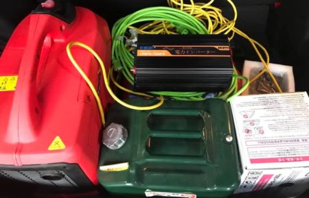 関心ないフリを決め込んで来たモノの、やはりナニやってても気が晴れない。猛急で仕事やっつけ2000Wの発電機と容量1500Wのインバーター、予備燃料、ガスコンロ、コーヒーメーカー+コーヒー300杯分と水500cc×35本を用意。満タンで900km走るXC60D4に乗りいすみ(大多喜)のサンコーワークスへ。ここから満充電してあるリーフe+に乗り換えます。