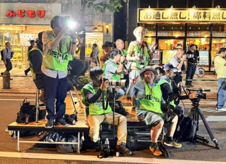 驚いたことに10人以上乗れる馬車を軽々引っ張ってました。信号は停止線で止まるし、人が渡っていれば止まる。ウインカーも付く。いやいや素晴らしい。ただ燃費悪そうです。遅いし(笑)。これは観光用だったのか? と考えながら街中を歩いていたら、知り合いのカメラマンが集まっている! こちらを向いて「ナニしにきたんだ?」という人もいる。私はカーボンニュートラルの取材です。