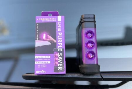 数年前に灯光の色が紫色で各基準を満たせば、三角表示板の代わりに使えるようになり、「パープルセーバー」はその道路交通法施行規則適合品のようです。ただし、発炎筒(LED含む)の代わりにはならないようです。