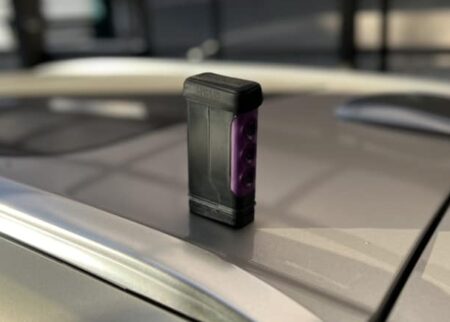 脱線しました。停止表示機材、三角表示板にだけに限らない。私が使っているのはエーモンの『パープルセーバー』という製品。上の動画を見て頂ければ解る通り、紫色のフラッシュライトである。三角停止表示板より圧倒的に遠くから見える。雨天時などの悪天候にも強い。操作はとても簡単で上側を押すだけ。下側は磁石になっており、スチールの屋根ならペタンと張り付く。