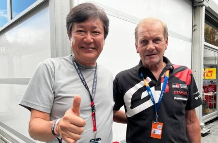 昨日GRヤリスを走らせたユハ・カンクネンさんです。顔ちっちゃいです。というか私がデカい?(泣)。今日も楽しみにしてますといったら「今日は運転しないですよ」。ん? 誰が乗るのか聞いたら「アキオさん」。ありゃま! 可能性はあると言われていたものの、驚きましたね! 今日は水素エンジンGRヤリスをモリゾウさんが運転するとのこと。