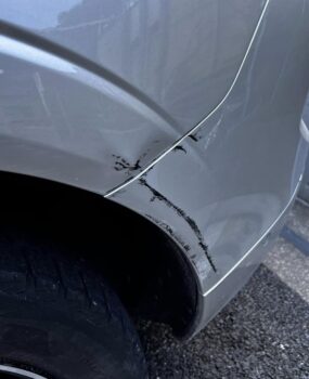 こんなことがない限り板金の取材などしないですから。幸い、塗装はクルマが勝っており、落とせばなんとかなりそう。問題はフェンダーの曲がりだ。事故でかつてのビッグモーターに保険修理を頼んだら、軽く30万円コースかと。一番予後がいいのはデント。まずダメモトで聞いてみようと思う。続いて流行の「カーコンビニ倶楽部」。ダメなら腕利きの板金屋に頼みます。