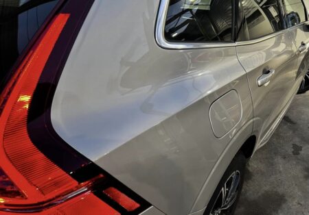 XC60にガラスコートしたのが2019年7月。それから鉄粉舞うバス通りに面した青空駐車という厳しい状況ながら、水垢なんか皆無。一番厳しいドアミラー周りだって全く「汚れの川」が出来ないから素晴らしい。及川さんに怒られちゃいそうだけれど、時間の無いときは洗車機を使う。このあたり、ミラーをたたむので洗われにくいところながら、吹き上げクロスだけで汚れは全て落ちる。