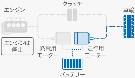 電池もモーターも「定格」と「短時間」の出力は違う。数秒単位の短い時間ならターボエンジンで言うところの「オーバーブースト」を掛けることが可能。例えば定格出力30馬力のバッテリーであっても、3秒なら150%増しの45馬力引き出したって何の問題もありません。日産もトヨタもそういった制御を行い、電気感を出している。