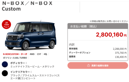 新型N-BOXの乗り出し価格300万円になるケースもあるという。もはや軽自動車の価格じゃない