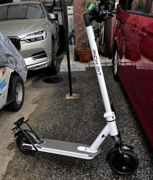 はたまた、近所の郵便局や買い物、高血圧の通院でクリニックに行くときなど(歩くと血圧上がります)、ほどんどクルマや歩行者の往来がない道を使っていくと便利。ちなみに私が乗っているのは『RICH BIT ES1』というタイプで、楽天だと送料込み6万9800円(3678ポイント還元)。コストコオンラインなら6万3800円。もちろんナンバー取得用の書類付き。