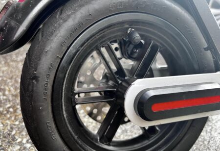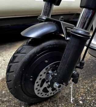 後輪もディスクブレーキ。空気入り8.5インチタイヤ