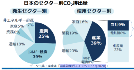 日本製鉄、我が国に於ける使用セクター別CO2の9%も出してる。私は競技で少しCO2出します