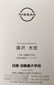 クルマ好きにとって日産は大切なブランド。先日のこと。縁あって上のような名刺を作って頂いた。ギャラ無し100%ボランティアながら、こういう名刺を作って貰うと新聞沙汰になるような行動は100%出来ない(今までもないですが)。でもクルマ好きとしちゃ光栄×100万倍である。日産、クルマ好きが応援できるような対策を次々と打ち出して欲しい!