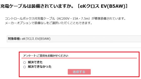三菱自動車筋に聞いてみたら「当然の如く充電ケーブルは標準装備です。日産さんは発売直前にオプション扱いとしたと聞いています。しかも長すぎて使いづらい全長15mのタイプと短すぎる3mのタイプしか設定していないのがナゾです。弊社は標準的な7.5mです」。グーグル先生に”eKクロスEV 充電ケーブル”で聞くと、ワザワザこんなQ&Aを作ってありますね。