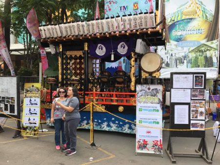 開会は11時からということで、9時に会場を回ってみた。『ブロックM』と呼ばれる日本料理屋さんどが多数集まっている地域を全部歩行者天国とし、上の写真のような舞台が3つ。そしてド~ンと御神輿。立派な山車もある。お祭りとしちゃ万全。ただムスリムの多いお国柄なので神社はありません。
