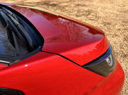 この凹凸が解らないで磨いちゃうと、デザインの良さを殺してしまう。解りやすいのがボンネットのエッジ。普通に電動ポリッシャー掛けたら、エッジは穏やかになるしフロントガラス前のキャラクターラインも削ってしまう。及川さんはそういった「急所」をしっかり活かし、オリジナルデザインを際立たせる。ある意味、デザイナーの気持ちを汲む。