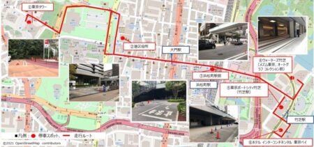 正気かよ! と突っ込みたくなるのが運行ルート。大阪の「クルクル」は交通量の少ない団地内の道路。けれど港区の運行ルートを見ると以下の取り。交通量多く、左側に駐車車両だってたくさんある道路を20km/hで走らなくちゃならない。ずっとブツけられる可能性あるし、事故に遭った時の安全装備だって貧弱(というかシートベルトすらなし!)。