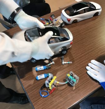 興味深いのは子供を対象とした燃料電池教室など行っていること。下のミニカーは、本格的な燃料電池だったりする。水素は小さいボンベに入っており、システムはMIRAIと同じ。しかもスタック作りを子供が刷毛で素材塗るところから始めるそうな。遊びながら燃料電池のシステムを学べる。見てるとみんな楽しそうでした。日本の未来を育てています。超いいね!