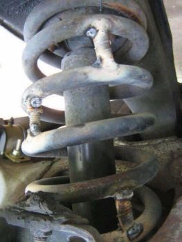 これのコンセプトは「荷物一杯積むからロールしちゃイヤよ!」であります。アジアに行くと山のように荷物積んだトラックが走ってる。サスペンション動くとロールして危険! そこでバネの動きを制限しておけば安心なのだった。ただ溶接はやっつけ仕事。重い荷物だったり路面からの振動あったら折れるかも。エアバッグの誤爆からはるか遠いお話です。