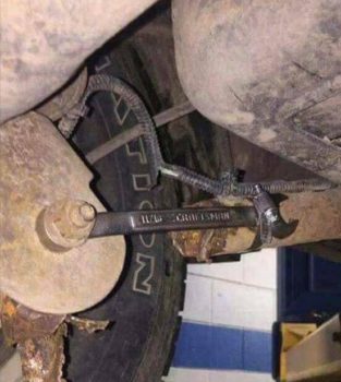 足回りの主要部材(アーム)こそ折れたらオシマイだけれど、リンクやトレーリングアームとかなら、スパナで一時凌ぎ出来るということだと思う。こういった修理方法、いろいろ覚えておくとラリーでトラブル起こした時にサービスまで辿り着くためのアイデアになる。これなんか案外理にかなっており、少なくとも引っ張る側の応力についちゃ無いよりずっと良さそう。