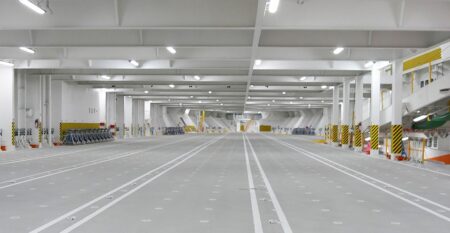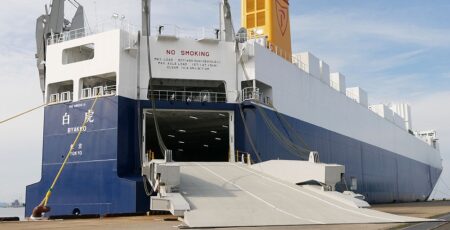 白虎の船内。ここは40フィートコンテナ20本と乗用車28台