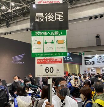 結論から書くと日本のバイクメーカーは一つもブースに入れませんでした。どこも入場制限をしており、並ばないとダメ。中でもホンダが人気で、60分待ち! ヤマハもスズキもカワサキもKTMもブースに入るため並ぶ。新型コロナの入場制限ということなのだけれど”制限してるブースの中”を見たら大混雑! 上野のパンダと同じくらい短い時間しか見られず。