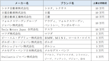 まず基本は電気自動車もPHVも同額の35万円。これに100Vでいいから外部給電機能が付くと45万円になる。ここからが面白い! 2023年度に都内の販売実績が40台以上あればプラス5万円。非ガソリン車の販売に実績あれば5万円で10万円の上乗せがある。トヨタ、三菱、日産は満額の10万円。マツダ5万円。スバルとホンダについちゃゼロ。40台以下だし、実績もない?