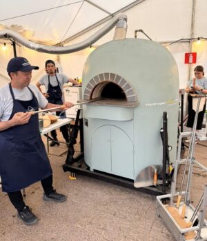 水素ピザ釜、調理が早いという。焼くのは名人! ウマカッタ!