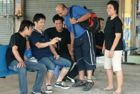どうするかと思っていたら、2日間くらいですっかり信頼され打ち解けちゃってる。ちなみに立ってるのはアジアンクロスカントリーで青木拓磨選手のコ・ドラもやってるイテポン選手(この年は私のコ・ドラでタイのチャンピオンになった)。タイ人、日本人を見るとジックリ評価する。尊敬できると思われたらすごい敬意を表してくれるのだった。