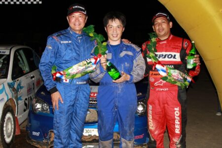 この年、鷹の目WRX STIでタイの国内選手権に出ていた。開幕戦は元イタリアチャンピオンのマリーニ選手と激しいバトルの末、何と表彰台の真ん中。続く2戦もマリーニ選手とタイのNo1ドライバーであるウィッタヤ選手と秒差の激しいバトルになり、これまた表彰台の真ん中! 意図せず少なくないポイント差を付けてシリーズTOPになってしまった。