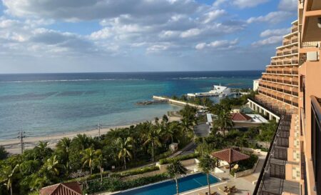 沖縄、昼間はTシャツでいいくらい暖かい。ガラガラなので新型コロナの不安も小