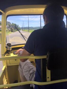 バイクって感覚的に倒して曲がりますが、トゥクトゥクはハンドルを切って曲がります。