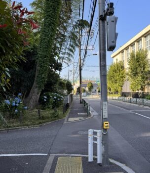 特にひどいのが、環八と目白通りが交差する谷原交差点。歩道横の看板に自転車は歩道に入るよう指示があるのに、あるのは歩行者専用道路標識だけでした。