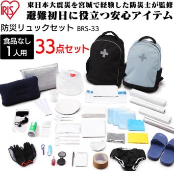 燃料は満タンに。持っていなければこんな機会に防災リュックなど人数分買っておくといい。クルマと家が近いなら、クルマに積んでおけば外出中に被災しても対応可能。上で紹介したアイリスオーヤマの防災リュックは食糧無しのタイプ。日持ちする水と食糧を1年毎くらいに入れ替えておけば安心です。もちろん御予算に応じてさらに充実した防災キットもある。