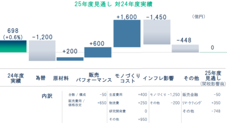 上は2024年4月~2025年3月とその前の年を比べたモノ。販売奨励金を1249億円も使っている。営業利益の1871億円は、販売奨励金と為替要因だけですっ飛ぶ。これに関税が乗ったらアメリカでの販売価格を上げなければならず、さらに台数落ちてしまう。上海ショーでマツダの評判を聞いたら、ネガティブ。毛籠さんの苦悩は痛いほど理解出来る。マツダを援護射撃する方法はないか?