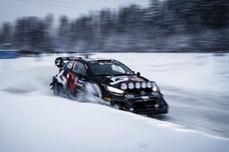 午後のセクションからさらに降雪量増え、出走順が早い勝田不利。しかもコンディションよくなる2つ後ろから走るのはソン・ネン人のラッピだ(たまにピやグもいますね。笑)。抜かれるのは当然で、おそらくラトバラ監督もプッシュしなくていいというアドバイスをしていると思う。金曜日終わってみたらラッピに3.2秒しか離されなかった! 余力あってのペースなら素晴らしい!