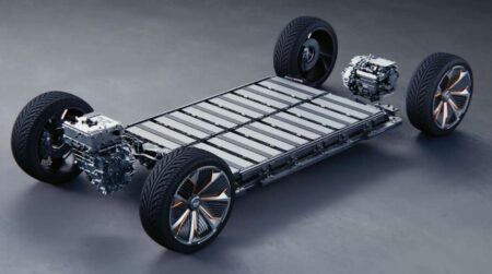 それじゃエンジンは右側に付いているのかとなれば、そうじゃない。時節柄、電気自動車らしい。考えてみたら電気自動車のプラットフォームって上や下のような感じ。上はVW。下がGMです。カマボコの板のブブンだけで走っちゃう。この上に乗用車やSUV、ミニバンなどの上屋を組むワケ。だったらスポーツカーだって簡単に作れるでしょ、ということになります。確かに簡単だ。