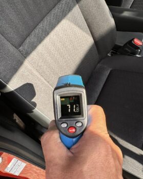 窓を締め切った炎天下の車内で最も温度高かったのはフロントシートで71.8度もありました!