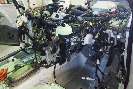 なかでも厳しいのがワイヤーハーネス。クルマにとっての血管であり神経系の役割を果たすワイヤーハーネスながら、最後まで残った労働集約型の部品だったりする。一昔前までは「内職」で成り立っていた。しかし内職をする人も減ったため、続々と海外工場に生産を移していたのだった。ワイヤーハーネスの生産を移管しようとすれば時間掛かります。