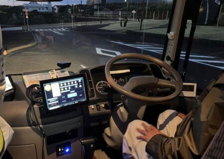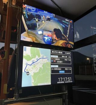 肝心の自動運転はどうかといえば、なかなか難しい感じ。八重根という停留所から出てすぐの止まれを右折。すぐ次の止まれがあり左折するのだけれど、左折した後、なぜか右にずれてしまい対向車と接近。慌ててドライバーがハンドルを戻していた。速度的には極めて遅かったものの、対向車、びっくりするくらいの挙動でした。見た感じ、誤認する状況じゃなかったですけど。