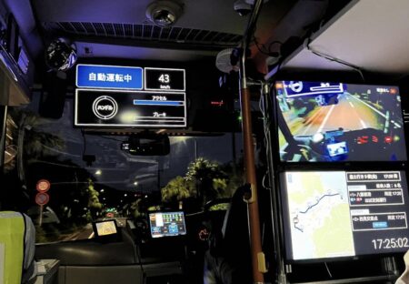 急ブレーキを掛けられない事情も分かるのですが、自動運転のバスには乗客にシートベルト装着可能なシートを採用しては?とも思います。面倒だという人には昔のボックス席のように後ろ向きのシートを一部に設けて最低限前方への衝撃対策をするとか。