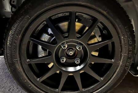大誤算だったのがタイヤ! 競技用を履いているだろう、と期待してたら転がし用の標準タイヤ! 最初から装着してある4本と購入した8本の12本でラリージャパンの280km+全日本ハイランドマスターズの65kmを走ろうと思っていたのに、8本になっちゃいました。タイヤ代、高いんですよ! 1本5万円近いですから。おそらくWRC出場チームで一番予算無いです。