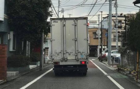 当然ながら警察だって見ているハズ。上のトラックも白昼堂々走り回っている(撮影は18日の13時30分くらい)。このクルマに付いて言えばブレーキランプまで切れてます。パトカーや白バイ、交番、警察署を避けて走り回っているのだろうか? おそらく何度もパトカーから見られていると考えるべきだ。どうして警察は捕まえないのだろう? 立派な違反行為なのに。